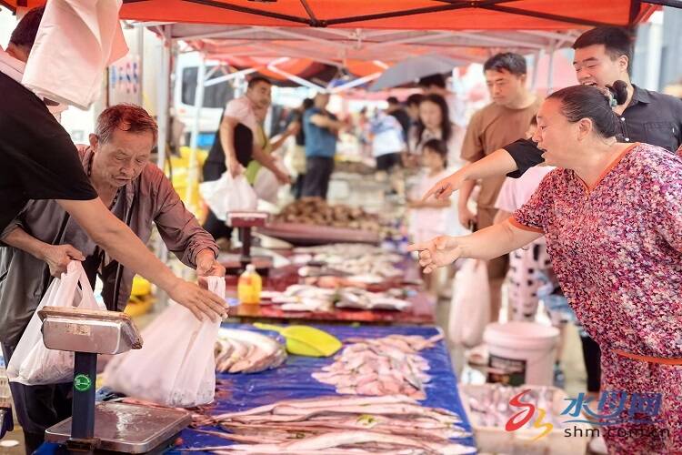 恰逢周末,记者看到不少小朋友的身影,他们蹦蹦跳跳地跟在父母身边,脸上写满了好奇与兴奋,看着新鲜上岸活蹦乱跳的鱼虾,忍不住发出阵阵惊叹。